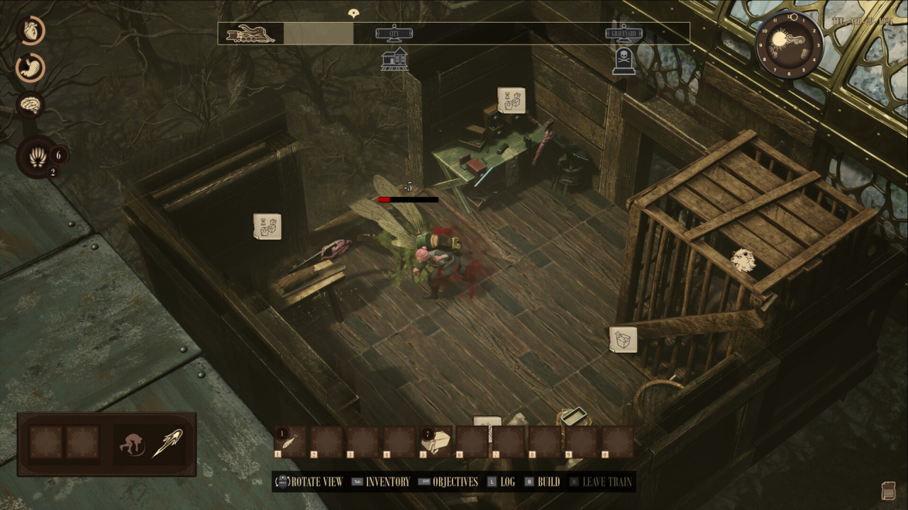 Эта крепость на колесах функционирует также как грозное оружие против ужасов Хистерры; игроки улучшают его вагоны с помощью зловещих инноваций. По мере укрепления связи между персонажем и поездом через совершение темных деяний открывается доступ к большей силе, позволяя вступать в схватки с гигантскими существами и, возможно, стать свидетелем падения Великих Древних. Геймплей включает исследование постоянно меняющегося мира, требуя от людей управления ресурсами и поддержания здоровья, голода и хрупкого психического состояния своего персонажа среди всепоглощающего безумия.