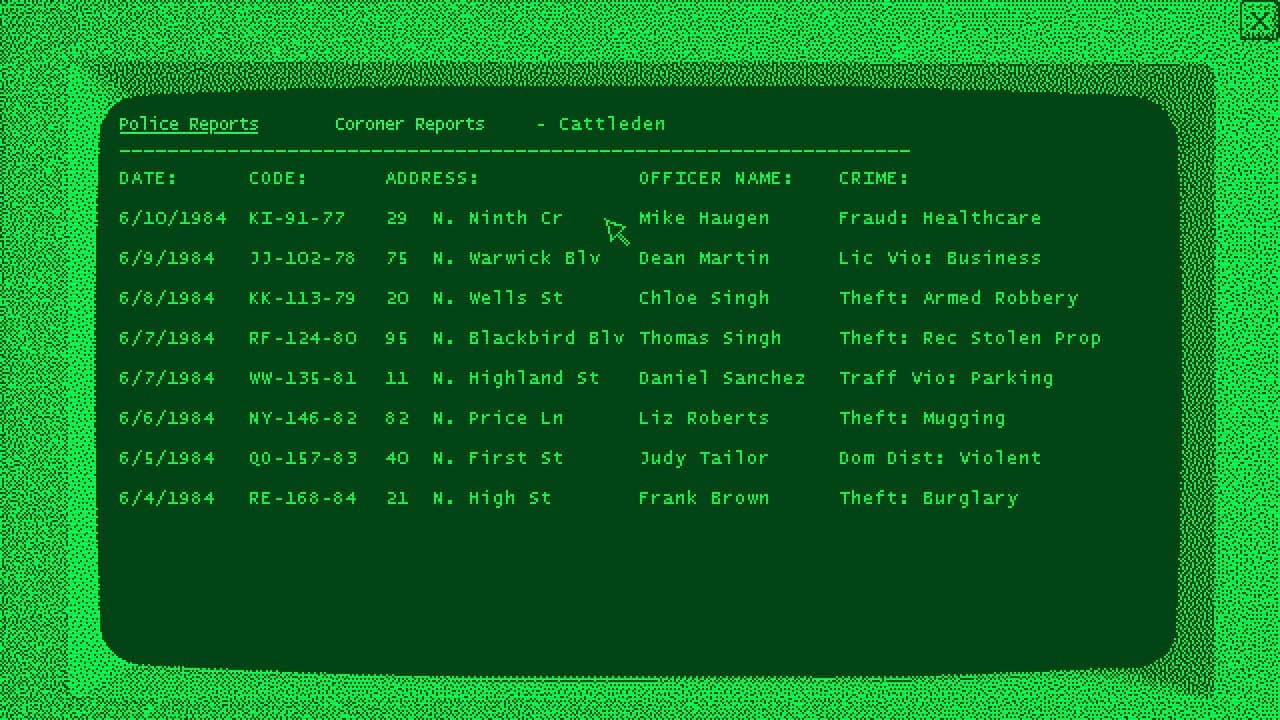 Более надежные данные приходят из отчетов полиции и судмедэкспертов, которые можно купить для определенных городов. Эти сводки содержат факты о происшествиях, но умалчивают о тварях или неправдоподобных деталях, чтобы не ставить под сомнение достоверность рапорта. Сопоставление этих фактов с туманными наводками из прессы является важной частью расследования в этой игре. Игрокам предстоит связывать воедино разрозненные данные, чтобы разобраться в происходящем.