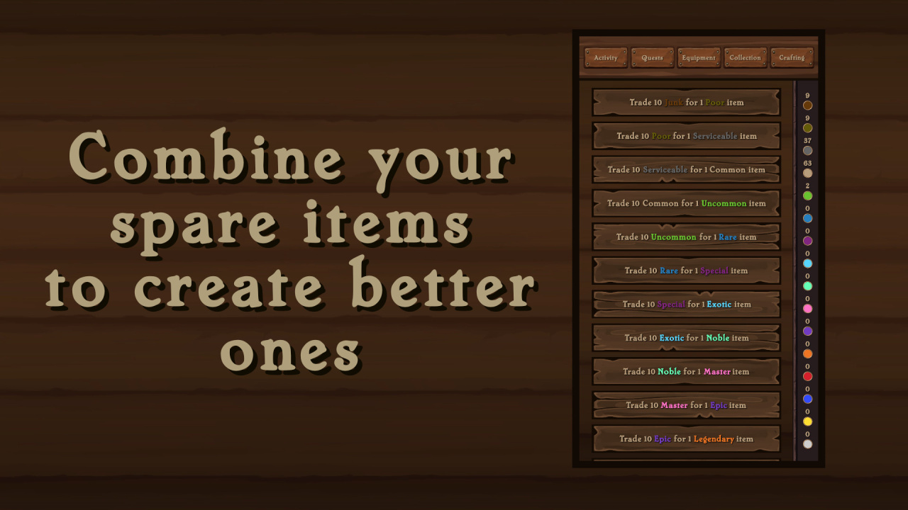 Геймеры взаимодействуют с механикой, включающей 13 определенных типов предметов, которые разделены на 16 ступеней градации по силе. К тому же, доступная система крафта позволяет комбинировать найденные предметы в избытке, чтобы создавать амуницию с увеличенными показателями из компонентов с низкими характеристиками. Эта система способствует непрерывному улучшению используемого снаряжения на протяжении всего прохождения. Для любителей соревнований на время предусмотрен интегрированный таймер, поддерживающий забеги на скорость в этой игре.