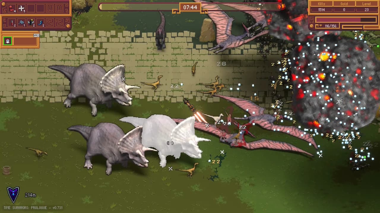 Time Survivors: Chapter 0 дарит геймплей экшен-рогалика, позволяя игрокам управлять известными историческими фигурами в битвах против толп врагов. Появляются такие личности, как Авраам Линкольн, Никола Тесла и Клеопатра, каждая из которых обладает специфическими умениями, интегрированными в боевую структуру буллет-хелла. Например, Ода Нобунага превращается в летающего робота-ниндзя, Линкольн создает защитные сооружения из деревьев, а Нерон использует огненные атаки на поле боя; выбор персонажа влияет на подход к каждому прохождению.