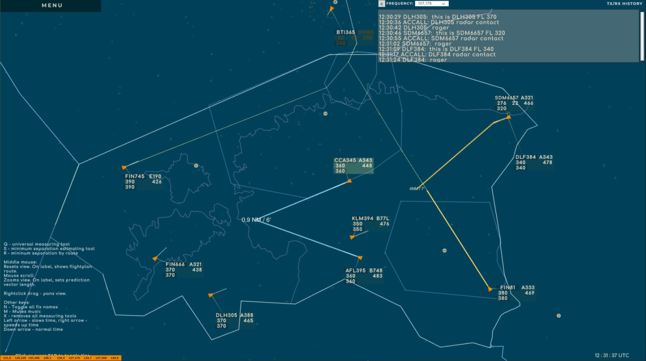 Управление преимущественно происходит через метки судов — это элементы интерфейса, привязанные к отметкам бортов на экране радара. Предусмотрены инструменты для оценки возможных конфликтов и анализа текущей воздушной обстановки. Вместо требования знать правила радиообмена, разрешения назначаются выбором опций на метках; затем воспроизводится соответствующий звук команд и подтверждений пилотов. Система имитирует электронную координацию, где связь между секторами осуществляется через действия с отображаемыми метками.