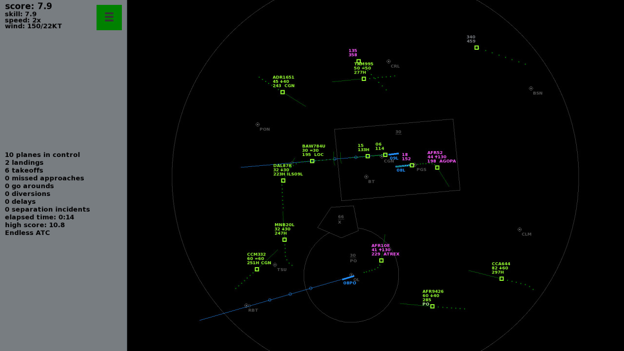 Endless ATC v 5.7.6 Новая версия Полная версия Последняя Дата выхода 19 июл. 2017 Разработчик startgrid Жанр Симуляторы, Стратегии, Инди Очень положительные на основе 484 обзоров в Steam 97% Обновлено 29 мая 2025, 02:13 Список изменений Endless ATC предлагает юзерам вжиться в роль авиадиспетчера, управляющего потоком самолетов в оживленном аэропорту. В тайтле вам предстоит направлять самолеты к взлетно-посадочной полосе, давая указания по высоте, скорости и курсу, при этом внимательно следя за радаром. Сложность возрастает по мере того, как все больше самолетов попадают в воздушное пространство, что требует принятия быстрых решений и эффективного управления, чтобы избежать аварий. Каждая удачная посадка увеличивает ваш счет, но ошибка может быстро свести все к нулю. Геймплей Endless ATC построен на простом интерфейсе, что позволяет сосредоточиться на выполнении поставленной задачи, а не на сложном управлении. Это делает игру доступной как для казуальных геймеров, так и для тех, кто всерьез интересуется симуляторами управления воздушным движением. Процедурная генерация в тайтле гарантирует, что каждая сессия будет проходить по-новому, со случайными схемами движения и сценариями в каждом аэропорту. Это означает, что ни одно из двух прохождений игры не будет одинаковым. В видеоигре девять разных аэропортов, каждый со своим уникальным набором задач, что вносит разнообразие в игровой процесс. Юзеры могут управлять большим количеством трафика, чтобы получить более интенсивный опыт, или выбрать более медленный темп, что делает проект адаптируемым к различным предпочтениям. Несмотря на минималистичное оформление, симулятор остается высокодетализированным, предлагая глубину, но не перегружая юзера. Скачать торрент Скриншоты Показать больше Видео из игры Скачать Endless ATC Тип релиза Пиратка Portable (Таблетка: Вшита) Версия v 5.7.6 (Полная) Последняя Размер 7.3 МБ Интерфейс Английский Озвучка Английская Установка: Скачать .torrent торрент файл Скачать БЕЗ торрента прямая ссылка через uTorria Альтернативные раздачи Прямые ссылки Облачные хранилища v 5.7.4 16 МБ Показать Системные требования ОС: 7, 8, 10, 11 Процессор: Pentium 4 Оперативная память: 1 ГБ Видеокарта: 1 ГБ Место на диске: 30 МБ Полёты, Менеджмент, Иммерсивный симулятор, Реализм, Минимализм, Процедурная генерация, Тактика в реальном времени, Игры в 2D, Набор очков, Расслабляющая, Головоломка, Вид сверху, Тактика, Казуальная