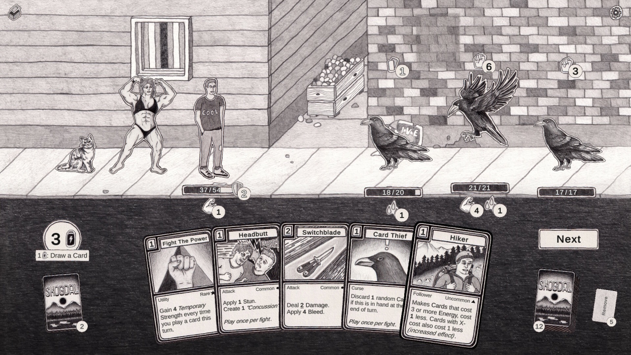 Этот карточный рогалик использует интерфейс point-and-click, управляемый только мышью. Изучение мира формирует важную часть процесса, поскольку предстоит многократно перемещаться по созданной вручную локации. Раскрытие загадки городка является основной задачей во время многочисленных заходов. Структура проекта в жанре roguelike обеспечивает, что новые вылазки предложат отличающиеся испытания и возможности для расследования. Такой подход стимулирует возвращаться, собирая другие колоды и привлекая иные комбинации соратников, чтобы разобраться с первопричиной беспорядков в городе.