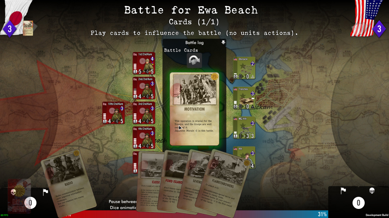 Возглавляя силы, игрок должен выбрать лучшее место для десанта и стремиться к разрушению наземных объектов, чтобы усилить эффект от воздушной атаки. Американскому командующему, в свою очередь, предстоит организовать защиту от внезапного наземного штурма. Геймплей предполагает принятие стратегических решений перед началом операции, что влияет на начальные условия. Каждая сторона выбирает варианты, стоящие очков победы, причем выбор противника неизвестен, что создает разные ситуации при каждом запуске игры. Командующий японской стороной стоит перед важным выбором места высадки: близость к Перл-Харбору несет риск попасть под обстрел береговых батарей, северное побережье находится далеко от обороны, но и от целей, а восточный берег предлагает другое соотношение риска и выгоды.