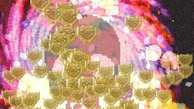 Эти бонусы также способствуют заполнению индикатора особого оружия, обозначенного фиолетовым цветом. Когда этот индикатор полон, одна единица такого оружия становится доступной в запасе, с максимальным запасом в одну единицу. Если летательный аппарат игрока получает удар при наличии активного заряда, активируется автобарьер, обеспечивая защиту и расходуя его. Применение этого спецсредства превращает снаряды противника на экране в бонусные элементы от него, а оппоненты, пораженные им, также выпускают эти особые находки. Эти конкретные поощрения приносят больше очков, чем обычные трофеи, а также увеличивают счетчик на правой стороне дисплея, но не заполняют соответствующий индикатор.