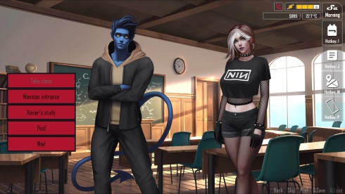 Пародийный стиль отсылает к комиксам X-Men, переосмысливая знакомые конфликты с акцентом на взрослую тематику. Геймплей в тайтле строится вокруг свободы выбора в школьных буднях. Уроки, общение с одноклассниками и повседневные дела создают живую атмосферу, где действия имеют последствия. Способности героя влияют на развитие отношений и событий, добавляя глубину романтическим и дружеским взаимосвязям. Откровенные сцены подчеркивают характеры и сюжет, отражая особенности мира мутантов. Школьная среда становится ареной для исследования конфликтов и личных историй.