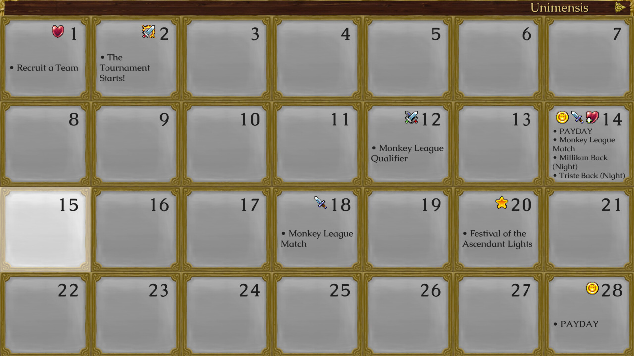 Можно участвовать в боях на арене, отправлять персонажей на задания, осуществлять торговые операции, проводить тренировки, пополнять состав новыми союзниками или углублять расследование заговора. Ночью ситуация перемещается в лагерь, где проявляются особенности каждого члена группы. Персонажи вступают в беседы, занимаются своими интересами и выстраивают взаимоотношения. Игра определяет, как распределить доступное время, понимая, что сделанный выбор влияет на общий прогресс в этом тайтле. Каждый завербованный член группы обладает уникальными чертами, личным прошлым и взглядами.