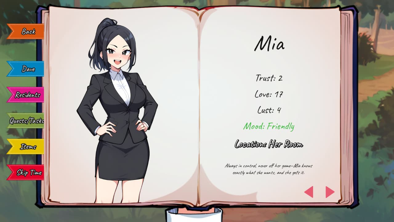 Condo Desires v 1.0 Новая версия Полная версия Последняя Дата выхода 11 авг. 2025 Разработчик Naughty Narratives Жанр Визуальная новелла, Аниме, RPG, Симуляторы, Инди Обновлено 29 марта 2025, 12:51 Список изменений Condo Desires протекает в общественном кондоминиуме, где геймеру предстоит взять на себя роль нового попечителя. Тайтл вращается вокруг контактов с различными жительницами, каждая из которых обладает уникальными личностями, предысториями и желаниями. Юзеры вступают в значимые взаимодействия, раскрывая секреты и исследуя фантазии. Выбор, сделанный в ходе игры, формирует дугу персонажа, открывает интимные сцены и определяет несколько возможных концовок. Повествовательная структура Condo Desires предлагает нелинейный подход, подчеркивая влияние решений на развитие сюжета. В геймплее используется динамическая система суточных циклов, разделяющая время на утреннюю, дневную, вечернюю и ночную фазы. Каждая фаза предоставляет различные возможности для контакта, развития героя и разрешения задач. Юзеры выполняют ежедневные обязанности, решают проблемы, связанные с квартирой, и поддерживают бесперебойную работу. Эти задачи способствуют росту отношений, влияя на доверие и близость. По мере углубления связей становятся доступны новые события и маршруты, характерные для каждого персонажа. В тайтле используются разветвленные диалоги, осмысленный выбор и разнообразные сценарии, чтобы создать сложную паутину исходов. Рост отношений играет центральную роль, требуя от геймеров изучения предпочтений каждого героя и принятия обдуманных решений. Взаимодействие варьируется от случайных разговоров и дарения подарков до выполнения заданий, укрепляющих связи. Скачать торрент Скриншоты Показать больше Видео из игры Скачать БЕЗ торрента прямая ссылка через uTorria Альтернативные раздачи Прямые ссылки Облачные хранилища v 1.0 103 МБ Показать Системные требования ОС: Windows Vista, 7, 8, 10, 11 Процессор: 2.0 ГГц Core 2 Duo Оперативная память: 2 ГБ Видеокарта: Nvidia GTX 750 Место на диске: 1 ГБ Выбери себе приключение, Игры в 2D, Смешная, Решения с последствиями, Несколько концовок, Казуальная, Нелинейная, Глубокий сюжет, Нагота, Игры с геймпадом