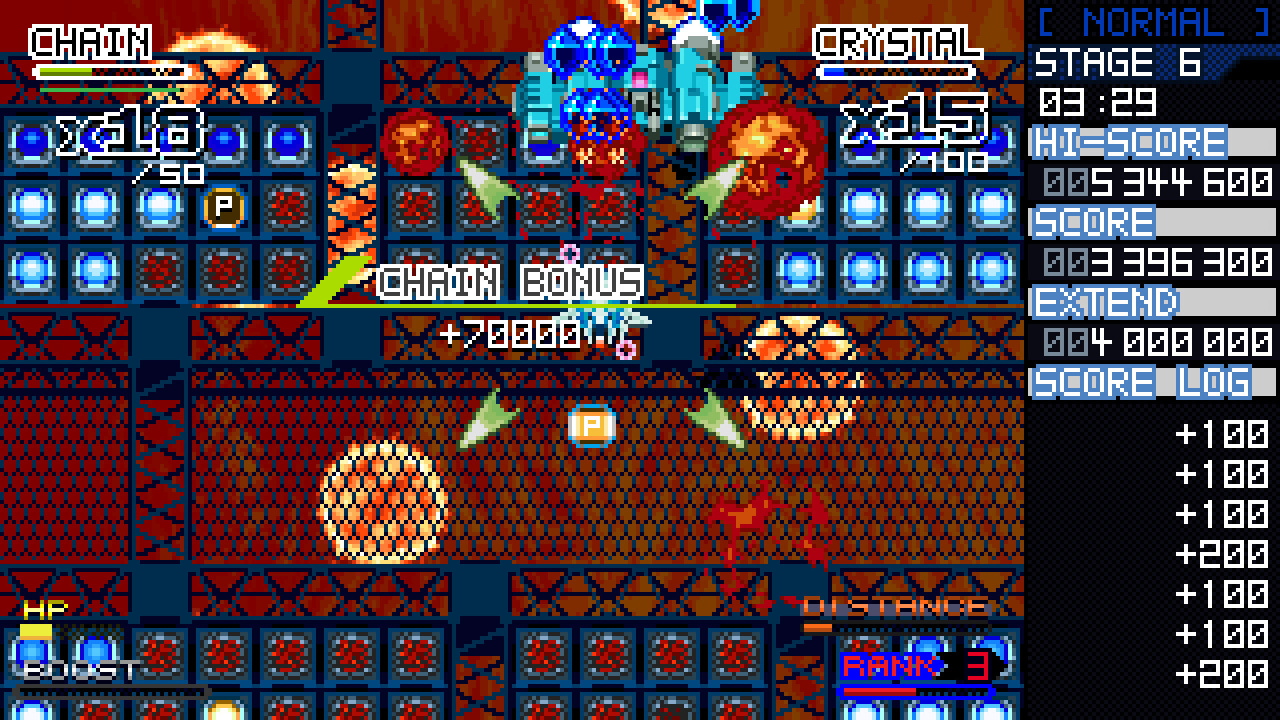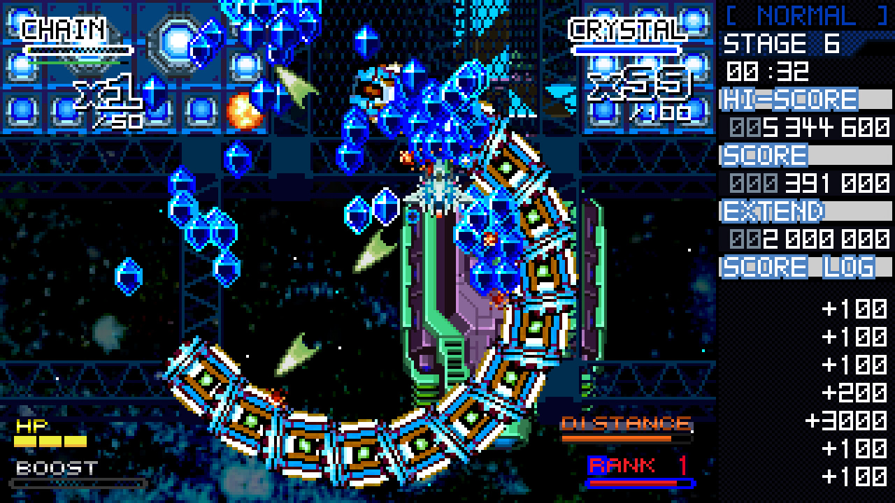 Crystal Breaker — это вертикальный шутер, где внимание сосредоточено на боях вблизи и быстрой ликвидации противников. В этом проекте игрокам приходится выходить на близкое расстояние с врагами, чтобы получить кристаллы, выпадающие при таких атаках. Собранные кристаллы дают бонусы, которые влияют на итоговые очки, что подталкивает геймера к агрессивному стилю ведения боя. Особенность игрового процесса — возможность не получать урон при столкновении с визави, что поощряет смелые и рискованные действия.