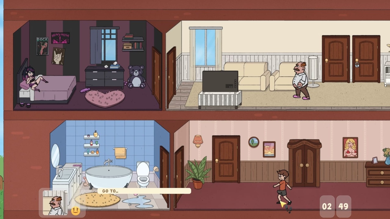 Tricky Traps and Naughty Acts — это проект в жанре 2D с моментами point-and-click, где геймеру предстоит устанавливать разнообразные ловушки для нейтрализации раздражающего соседа. В рамках процесса реализован боковой скроллинг и взаимодействие с персонажами, которые живут в доме и участвуют в откровенных сценках. Юзер может активировать цепочки событий, приводящие к сексуальным ситуациям, включая заигрывания и прикосновения.