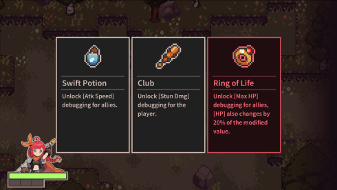 Debugging Hero знакомит с протагонистом, избранным Легендарным Мечом, который обретает способность изменять переменные персонажа. Эта центральная механика позволяет игроку преодолевать препятствия в подземельях и продвигаться к столкновению с Повелителем Демонов. Проект строится на применении манипуляций со значениями для взаимодействия с базовыми параметрами и статистикой игры. Главный герой может улучшать собственные атрибуты, например, показатели атаки и быстроту передвижения, используя эту систему.