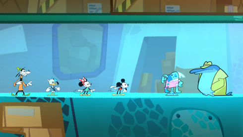 Disney Illusion Island Starring Mickey and Friends начинает экспедицию, где Микки, Минни, Дональд и Гуфи разыскивают три книги для защиты острова Монот. Геймеры сопровождают этих персонажей через биомы с уникальными чертами в этом двухмерном платформенном приключении. В ходе путешествия команда контактирует с жителями острова и встречает противников, создающих преграды.