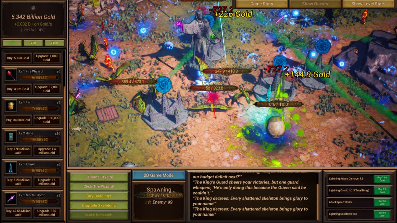 В Kill The Skeletons рефлексы и выбранные орудия становятся главными инструментами для воздействия. Касание инициирует прямые атаки, призванные истребить очередные волны скелетов, а накопленное золото позволяет приобретать больше средств разрушения, подпитывая видимый хаос. Возникают тысячи скелетов, включая особые варианты звёздного уровня, требующие больше усилий для ликвидации, но предоставляющие увеличенные золотые награды после их устранения, обеспечивая ощутимый рост ресурсов и общей силы.