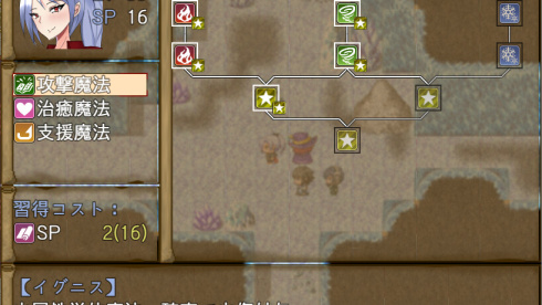 Failing Witch Iris and the Philosopher's Stone представляет собой ролевой проект со структурой, задействующей древо умений. Геймеры, выбравшие стандартный режим, столкнутся с тем, что прогресс требует взаимодействия со спутниками, не полагаясь исключительно на грубую силу. Данный геймплейный элемент определяет подход ко многим ситуациям. Конкретные происшествия иллюстрируются 34 графическими вставками; часть из них запускается диалогами, тогда как иные активируются при соблюдении условий в битвах с демонами.