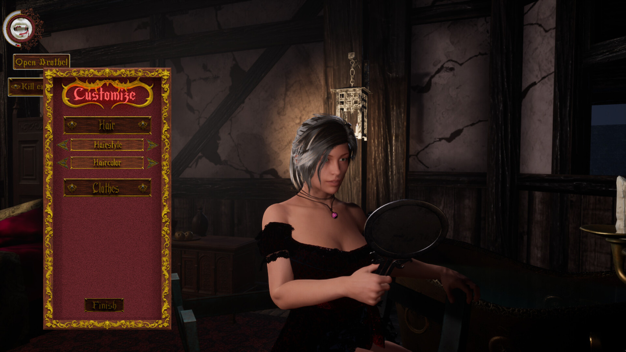 Система морали отслеживает выборы геймера, приводя к различным последствиям через механизм поощрений и наказаний, которые влияют на повествование, направляя его к одному из нескольких финалов. Игровой процесс включает разблокировку нарядов и аксессуаров для героини, обольщение клиентов для заработка ресурсов и утоление её собственной вампирской жажды. Игрок также может применять созданные снадобья, например, для растворения тел, всё время оставаясь под постоянным контролем своего хозяина. Этот тайтл также предлагает бесконечный режим для непрерывных управленческих вызовов и взаимодействия с его системами, включая функцию свободного обзора камерой во время откровенных сцен.