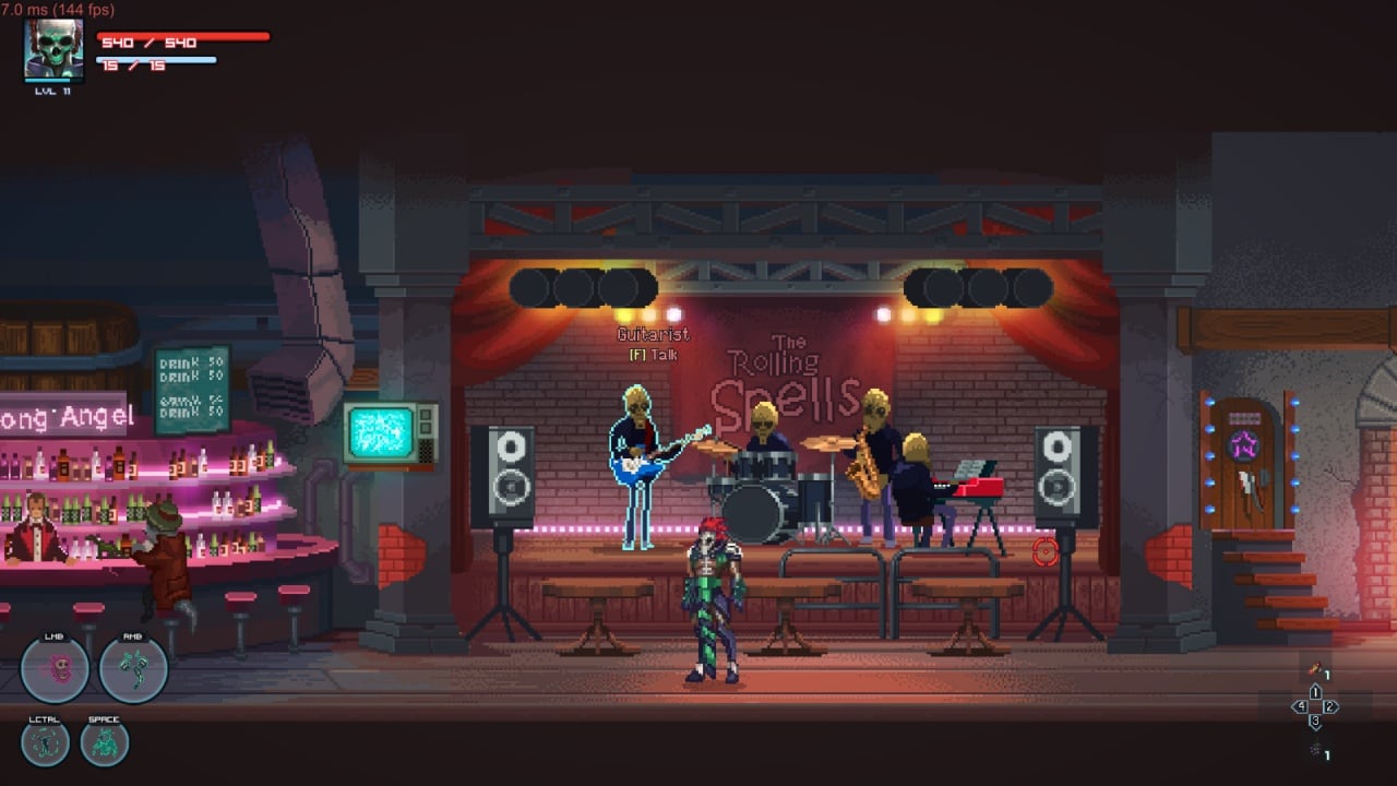 «Где же старые герои?» - спросите Вы. Однако они по-прежнему с нами в виде статуй, которые позволяют игроку получить привилегии и различные бонусы. Новые герои ничуть не хуже обучаются атаке неправедных богов и прочей нечисти, а безобидный юмор об алкоголе и смешении субкультур не дает им всем заскучать. Главный хаб, который позволяет вести торговлю и перемещаться между тремя доступными локациями, выглядит как типичный рок-бар с шаманами и ученым, взламывающим калькулятор. Следует отметить, что музыкальное сопровождение в игре достойное, умело подобранные рок-композиции захватят игрока в плен своей атмосферой.