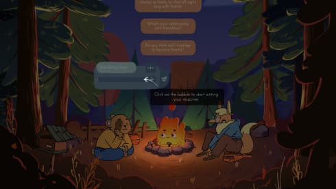 Игровой процесс в Fireside Feelings строится вокруг системы наводящих вопросов, которые охватывают широкий спектр тем. Они могут касаться соответствия детских мечтаний взрослой жизни или бытовых предпочтений, вроде готовки. Обмен такими размышлениями помогает формировать постоянно пополняемую коллекцию личных историй и эмоций от всего сообщества. По мере участия в этом проекте можно открывать предметы и обустраивать собственное место у костра. Это позволяет создать уникальное пространство для паузы и уединения.