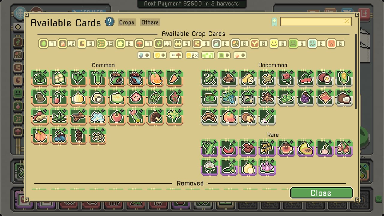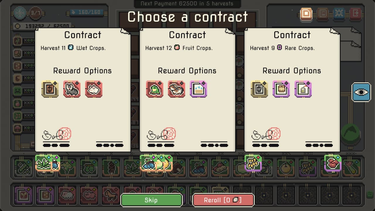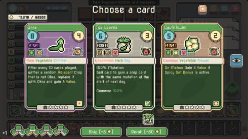Эта система в Crop Rotation полностью смещает акцент на стратегические решения, принимаемые в процессе формирования колоды. Постоянная дилемма заставляет делать выбор: копить деньги для выплат по займу или тратить их на обновление доступного набора карт в рискованной погоне за нужным элементом для завершения комбинации. От этих решений зависит выживание сельскохозяйственного предприятия.
