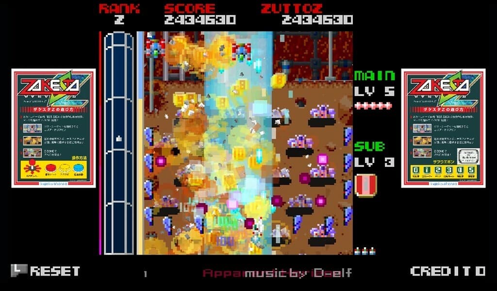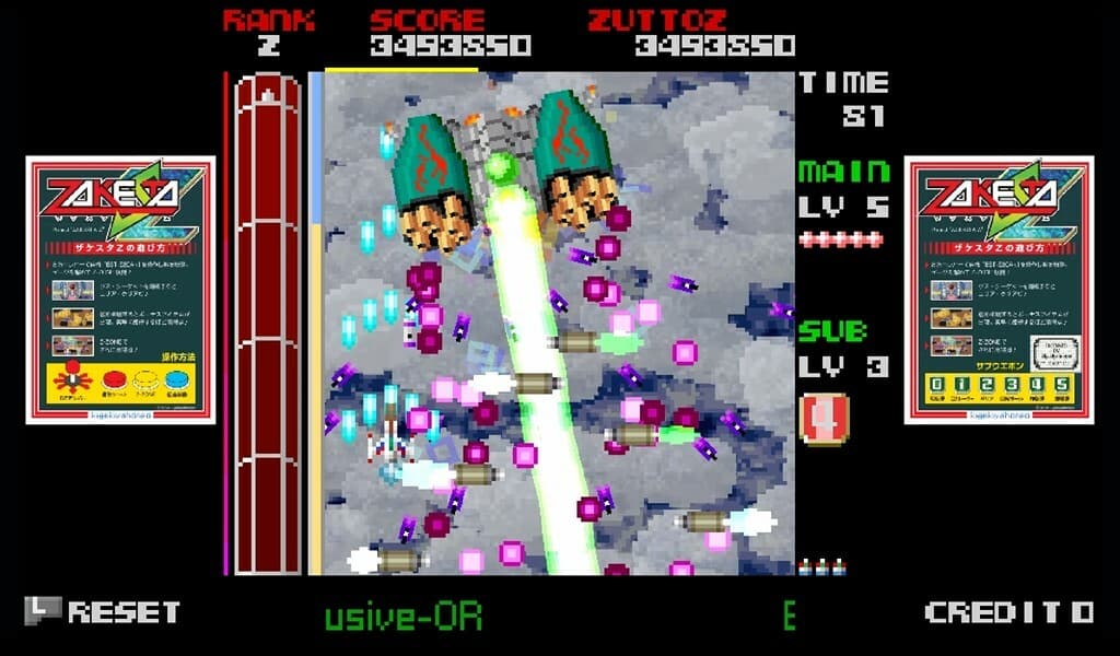 Ключевая механика набора очков в ZAKESTA-Z связана со стратегическим применением Z-ZONE — кругового поля, которое создается за счет расхода особой шкалы. Любые подобранные в периметре этой области бонусы превращаются в элементы, дающие большее количество очков, что подталкивает к точному позиционированию и расчету времени. Игра предоставляет три разных режима, меняющих структуру испытаний. Геймер может выбрать NORMAL для стандартного прохождения, ZOGEN с динамически меняющимся уровнем сложности или ZUTTOZ, где весь игровой процесс проходит на максимальном ранге с самого старта.
