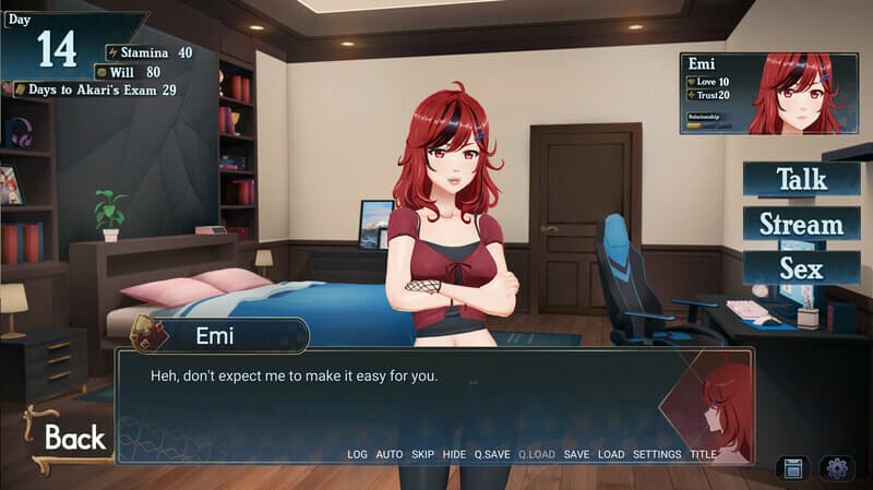 Взрослый контент этой игры подается через повествовательные события и более 15 особых сцен с компьютерной графикой. Эти H-эпизоды, изображающие наготу и сексуальные акты, выполнены в полном 3D, предоставляя геймеру контроль над углом обзора во время анимаций. Доступ к таким сценам открывается как прямой результат сделанного выбора, менеджмента взаимоотношений и успешного ориентирования в социальных взаимодействиях особняка в рамках отведенного времени. Интерфейс способствует концентрации на диалогах с персонажами и распределению ограниченного запаса сил протагониста на день.