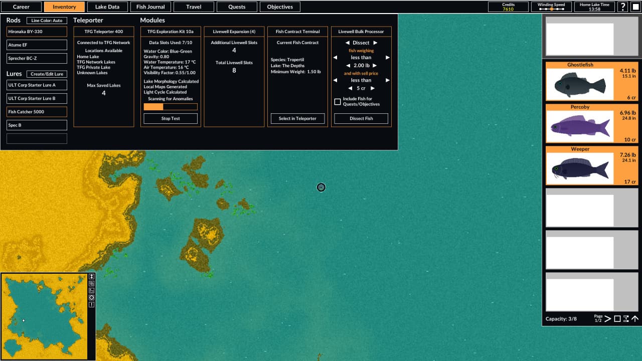 Геймеры также могут участвовать в рыболовных турнирах, состязаясь с другими персонажами за призы, при этом успехи отображаются в таблице лидеров. Кроме того, контракты на вылов открывают возможность поймать определенный вид за вознаграждение. Перемещение и взаимодействие сосредоточены вокруг судна BOAT — плавсредства, оборудованного Универсальным Озерным Телепортом. Корабль оснащен подводными двигателями для маневренности и устройством, позволяющим делать приманки на заказ. Персонаж может конструировать наживки из различных деталей и модификаций для ловли конкретных видов.