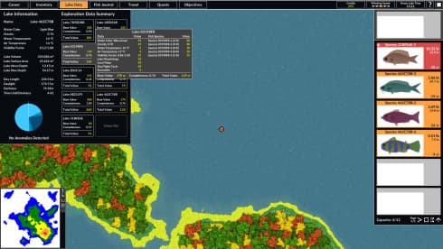 Также ведется детальная статистика карьеры, отслеживающая показатели от пойманной добычи до заработанных кредитов. Мир Intergalactic Fishing содержит бесчисленные озера, созданные при помощи процедурной генерации, от заселенных систем до неисследованных территорий. Каждый обитатель глубин — это создание с уникальной моделью поведения, которое зависит от вида, размера, повадок и времени суток. Изучение повадок различных существ является важной частью геймплея.