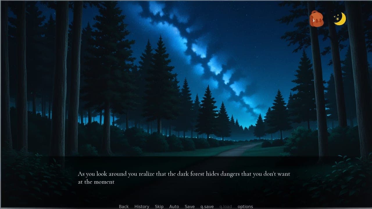 Night Song of Wandering начинается с того, что главгерой-мужчина просыпается в мире, управляемом незнакомой системой магии. Сюжет сразу сталкивает его с чередой странных явлений и мистических загадок, мешающих осмыслить происходящее. Первостепенная задача персонажа — изучить эти события и постичь законы нового окружения в формате визуальной новеллы. Игрок ведёт протагониста через начальные испытания, совершая выборы, которые определяют дальнейший путь.