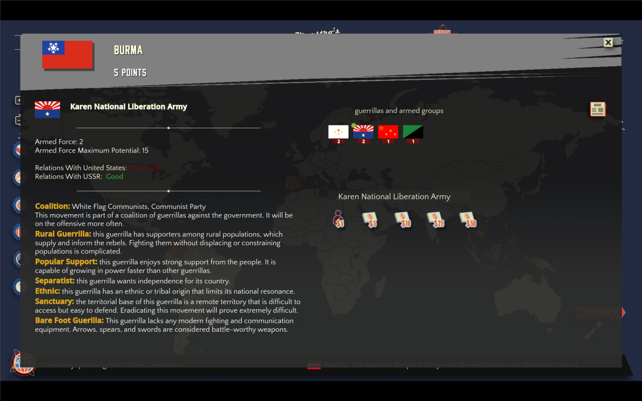 Maestro's Cold War 2 v Build 22653632 Новая версия Ранний Доступ Последняя версия Дата выхода 3 апр. 2025 Разработчик Maestro Cinetik Жанр Симуляторы, Стратегии Очень положительные на основе 122 обзоров в Steam 99% Обновлено 9 мая 2025, 12:19 Список изменений Maestro's Cold War 2 помещает игрока в ключевой конфликт середины XX века, определявший мировую политику. Эпоха характеризуется противостоянием мощных идеологий, каждая из которых располагает значительным арсеналом ядерного оружия. Прямое столкновение между противоборствующими державами несет угрозу всеобщего уничтожения. Это моделирование сосредотачивает внимание на непрямых методах воздействия, минуя открытые военные действия. Успешное прохождение этого периода требует тщательного планирования и умелого применения невоенных инструментов влияния. В Maestro's Cold War 2, принимая командование Соединенными Штатами или Советским Союзом, вы руководите действиями в различных частях света. Это включает ведение сложных дипломатических переговоров, артикулирование скрытых угроз оппонентам и осуществление тайных операций в нужных регионах. Главная цель заключается в укреплении позиций собственной идеологической системы и подрыве влияния враждебной структуры.Механики этого тайтла предоставляют широкий выбор подходов к решению стратегических задач, точно воспроизводя многосторонний характер исторического противостояния. Эта стратегия объединяет базовые принципы планирования с появлением исторических событий, которые влияют на ход партии. Такие моменты требуют глубокого осмысления и вынуждают принимать ответственные решения с далеко идущими последствиями. Итоги сделанных выборов прямо формируют баланс сил на мировой арене и определяют развитие ситуации. Изучение всех возможных путей развития и реакция на разнообразные сценарные ветви открывает широкие возможности для повторного прохождения. Скачать торрент Скриншоты Показать больше Видео из игры Скачать БЕЗ торрента прямая ссылка через uTorria Альтернативные раздачи Прямые ссылки Облачные хранилища v Build 22653632 833 МБ Показать Системные требования ОС: Windows 11 (64-bit) Процессор: 1.5 ГГц Intel celeron / AMD Athlon 64 x2) Оперативная память: 1 ГБ Видеокарта: Intel HD 4000 / AMD Radeon r5 230 / Nvidia GeForce GTX 710 Место на диске: 1300 МБ Политический симулятор, Песочница, Пошаговые стратегии, Военные действия, Военные конфликты, Война, Глобальные стратегии, Игры в 2D, Вид сверху, Историческая, Альтернативная история, Глубокий сюжет