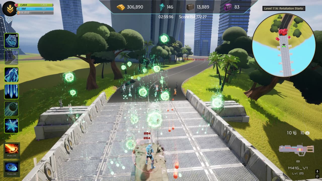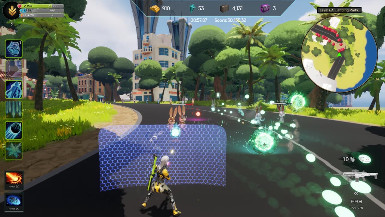 Эта система с двойной перспективой позволяет применять различные тактические подходы в зависимости от сценария. Развитие персонажа в Attack of Bunnies управляется через систему прогрессии с механиками RPG. По мере продвижения можно повышать уровень своих героев, использовать различные усиления, найденные во время миссий, и заниматься кастомизацией внешности. Арсенал оружия также подлежит системе улучшений, которая изменяет его характеристики в бою.