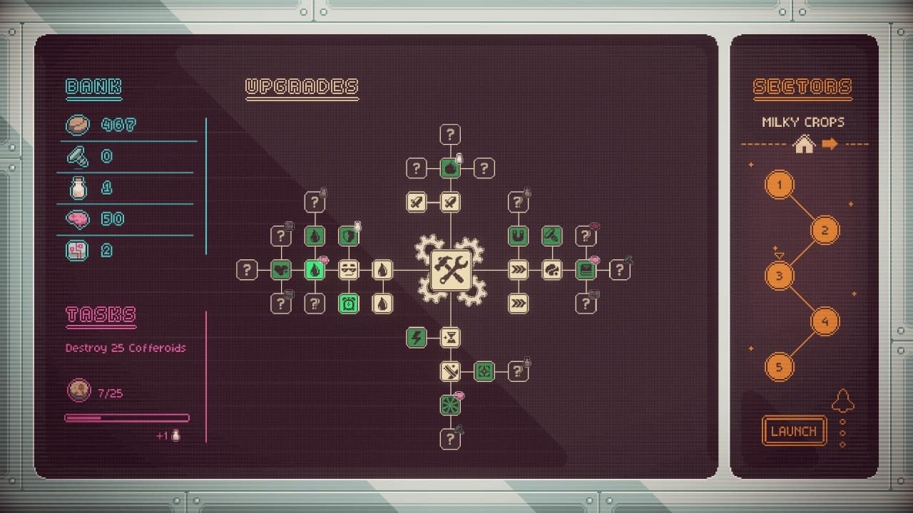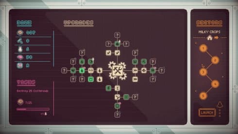 Прокачка управляется системой улучшений, сосредоточенных на звездолете, который является единственным инструментом для добычи и боя. Разветвленное древо умений открывает путь к усилению мощи судна и получению особых функций по мере продвижения в игре. Новые способности и навыки приобретаются не только за счет трат накопленного, но и через выполнение конкретных заданий и планомерное уничтожение автоматизированных подразделений корпорации. С более чем 100 отдельными апгрейдами для внедрения, корабль проходит через постоянные поэтапные усовершенствования, повышающие его боевую эффективность против сильного противника.