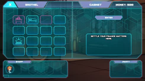 Прогресс отслеживается с помощью очков опыта и системы репутации, открывающих новые возможности. Заработок происходит тремя путями: через успешную работу заведения, победы в пошаговых сражениях и близкие контакты с девушками из штата. Эта игра позволяет изменять внешность главного героя и сотрудников, подбирая им одежду, прически и вооружая для предстоящих конфликтов.