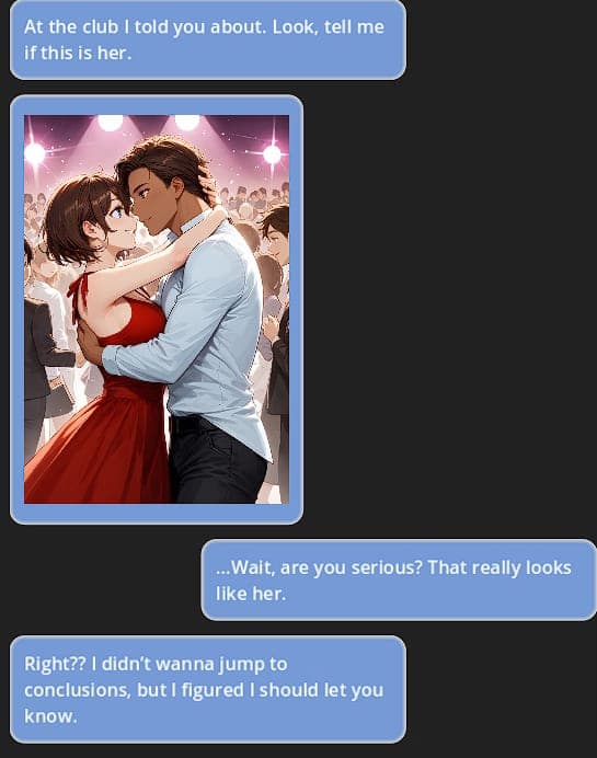 Поворотный момент наступает во время случайной встречи, раскрывающей подробности, которые противоречат рассказам девушки, бросая тень на их союз. Это расхождение в фактах вынуждает персонажа столкнуться с ревностью и первыми признаками вероятной измены. Сюжет NtrGram развивается в зависимости от решений, которые игрок принимает в этих меняющихся обстоятельствах. Каждый сделанный выбор напрямую определяет, каким образом протагонист будет проверять слухи и несостыковки в фактах о жизни Ирен.