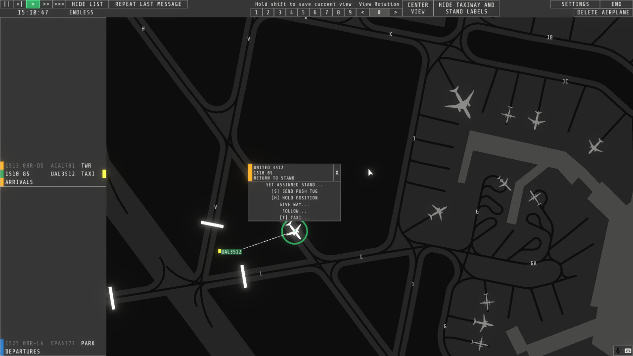 Дальнейшая персонализация доступна через настройки радара, позволяющие выбрать различные иконки и модифицировать частоту обновления позиции от непрерывного движения до интервалов в 5 секунд. Координация с диспетчером вышки является рутинной механикой, требующей передачи самолетов по мере их приближения к назначенной взлетно-посадочной полосе. Симуляция вводит события, нарушающие стандартный ход операций и требующие немедленного внимания. Эти ситуации могут включать борт, вынужденный вернуться к гейту по незапланированной причине, или другой, которому требуется дополнительное время на рулежной дорожке.