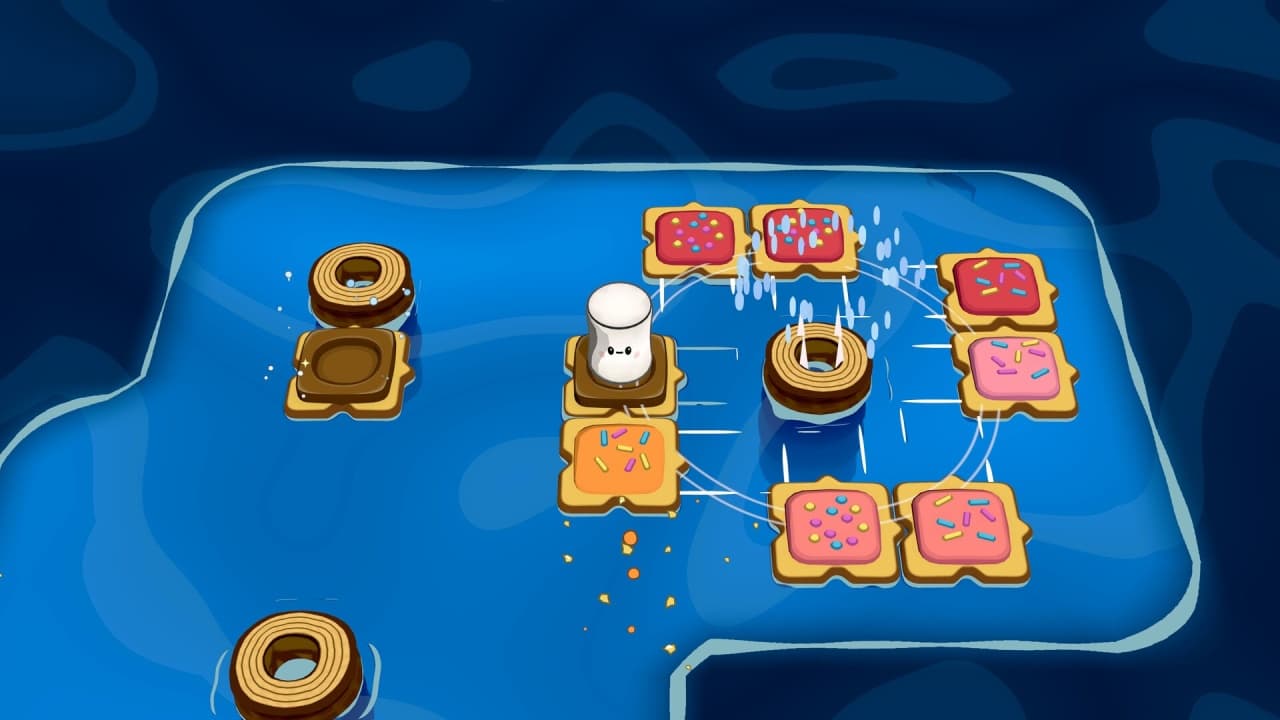 Один клик может расколоть участки суши или привести в движение целые сегменты мира, коренным образом изменяя состояние головоломки. Цель на каждом этапе — определить верную последовательность сдвигов окружения, создающую проходимый путь для зефирки. Ключевые механики в One S'More применяются на многочисленных уровнях, построенных из сладостей вроде вафель и желе, где для решения задач требуется логика. Эти основополагающие взаимодействия служат базой для кампании головоломок с возрастающей сложностью, но без введения новых элементов управления.