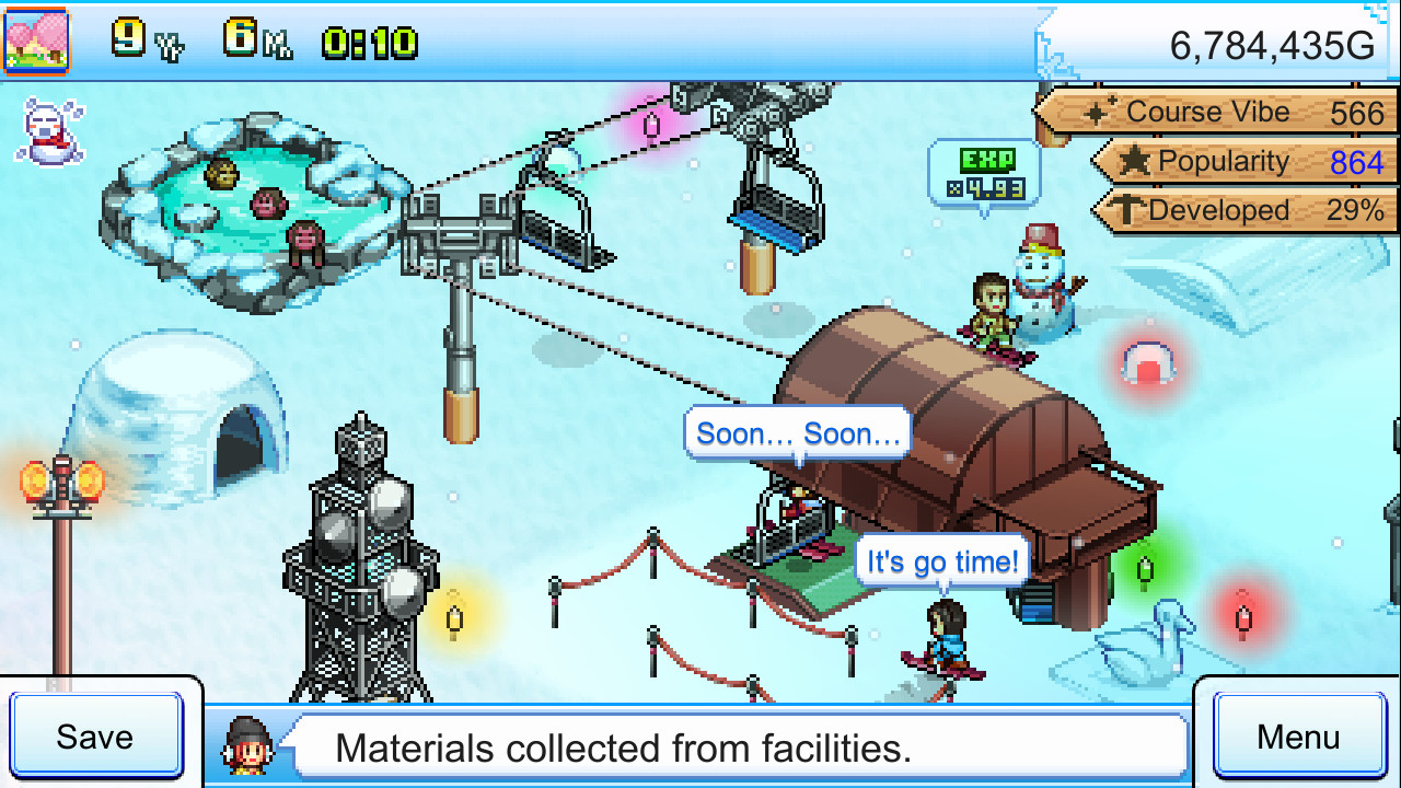 Успех комплекса напрямую определяет востребованность его лыжных спусков, формируя непрерывный цикл развития и привлечения постояльцев. Гостиничные магазины и пункты питания вносят свой вклад в деятельность всего заведения, обеспечивая реализацию произведенных товаров и услуг. В Shiny Ski Resort, игроки систематически увеличивают зоны для активного времяпровождения, наблюдая за посетителями, оттачивающими свои горнолыжные умения.