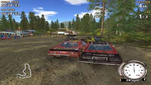 Карты в FlatOut, аркадном симуляторе построеном на разрушении автомобилей и всего вокруг, имеют свою структуру разрушений, но даже четко построенные декорации не оставят вас без внимания. Деревянные заборы, металлические бочки, стенды, автомобили других игроков — всё это можно сломать, взорвать, разрушить. Игра заслужила популярность не только из-за жестокого обращения к автомобилям и всему вокруг, но и из-за реалистичного вождения, грамотно воссозданной механики поворотливости автомобиля в зависимости от его веса.