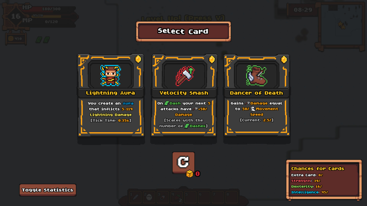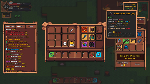 Структура этого проекта такова, что каждое прохождение предлагает отдельную последовательность испытаний, не похожую на предыдущую. Прогресс персонажа в рамках одного забега в DunHero управляется сбором экипировки и повышением уровня. Для обнаружения доступно более 250 артефактов, усиливающих способности героя при использовании. С каждым новым уровнем геймер получает доступ к одной из 30 различных карт, обеспечивающих дальнейшие модификации для билда персонажа.