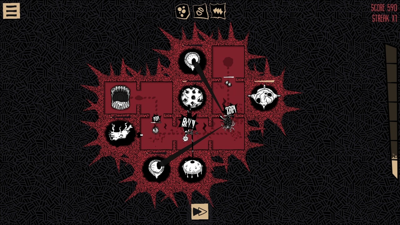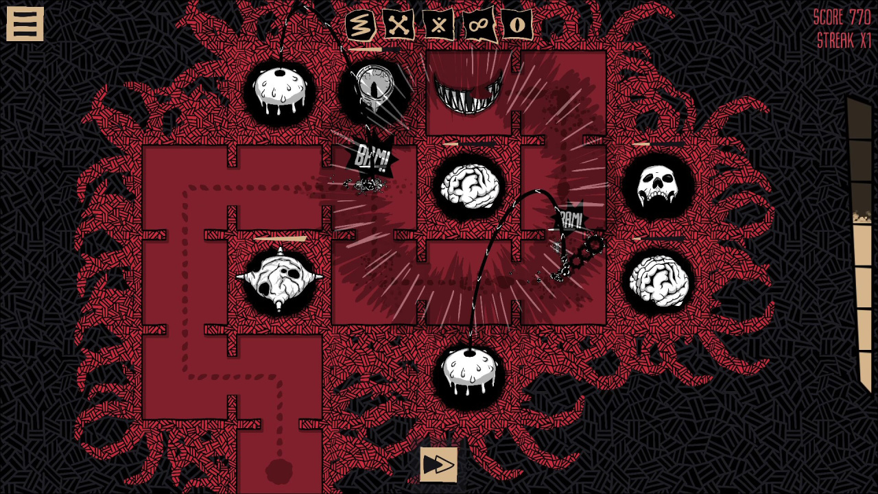 Каждый путь представляет собой уникальную последовательность событий и вознаграждений, поэтому любое прохождение ставит перед ним особый набор игровых тактических задач. Ключевая стратегия вращается вокруг расположения желобов, ведь враги появляются с конца любой линии, возводимой геймером. Этот геймплейный аспект ставит перед постоянным выбором между строительством длинного, запутанного лабиринта для многочисленных атак, или короткого, прямого коридора, концентрирующего все страхи в одной зоне.