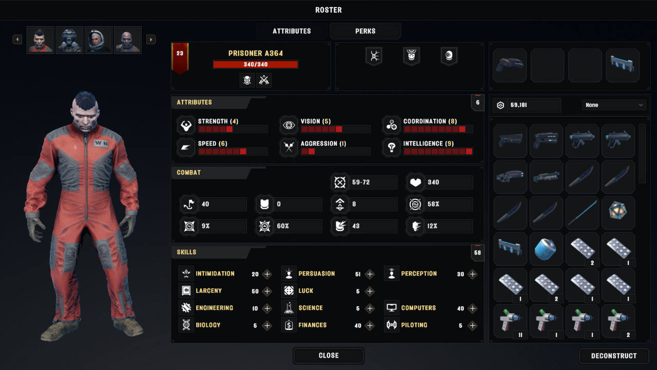 Создание персонажа в Sector Unknown определяет дальнейший геймплей, а выбор происхождения и личности дает определенные небоевые и боевые преимущества. Способности героя определяются 6 физическими атрибутами и широким набором нетехнических и технических навыков, таких как Пилотирование, Воровство и Убеждение. Эти умения открывают пути для решения ситуаций без прямого насилия. По мере роста коалиции игрока за счет присоединения планет к альянсу, прогресс измеряется Военным Счетом, влияющим на судьбу как самого протагониста, так и подконтрольного ему сектора.
