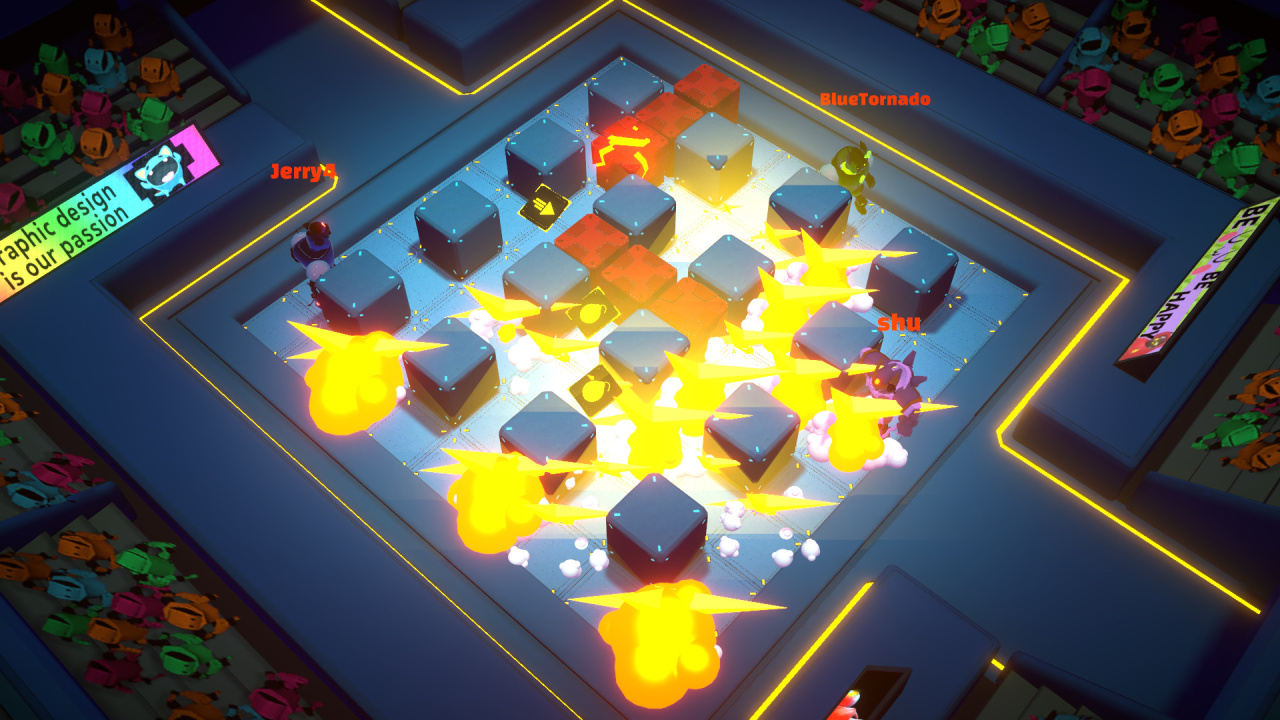 Bomb Bots Arena RUS v Free (Steam) Новая версия Ранний Доступ Последняя версия Дата выхода 1 июн. 2020 Разработчик Tiny Roar Жанр Инди, Экшены Обновлено 12 мая 2025, 10:31 Список изменений Bomb Bots Arena представляет многопользовательский формат, где механические единицы ведут взрывные конфликты на цифровых аренах. Этот тайтл обеспечивает возможность соревнования как в сетевом режиме с обширными контестами, так и локально, позволяя играть одновременно до 4 человек в одном помещении. Противостояние ведется путем размещения и детонации приспособлений. Bomb Bots Arena закладывает основу для сражений с использованием устройств. Геймеры настраивают внешний вид своих механических бойцов перед отправкой их в зоны противостояния для прогресса и получения новых навыков. В арсенале действий присутствуют удары по врагам, ограничивающие их перемещение, кратковременное создание защитного поля против угроз, или использование дистанционно управляемых зарядов для погони за противниками. Каждый игрок выбирает свой комплект способностей из доступного перечня.Состязания проходят в одиночку или с приглашением товарищей для установки правил в частных матчах. Сетевые форматы поддерживают масштабные сражения, где может находиться до 32 противников, предполагая условия, в которых выживший последним побеждает. Этот игровой процесс включает возможность перемещения взрывных зарядов по арене для влияния на положение врагов или их временного обездвиживания. Механические единицы способны возводить препятствия, блокирующие проходы, или находить ресурсы. Применение защитного маневра дает краткую неуязвимость перед взрывом. Игра предлагает разнообразие тактических возможностей. Скачать торрент Скриншоты Показать больше Видео из игры Скачать БЕЗ торрента прямая ссылка через uTorria Альтернативные раздачи Прямые ссылки Облачные хранилища v Free (Steam) Показать Системные требования ОС: 7, 8, 10, 11 (x64-bit) Процессор: Dual Core 2.4 GHz Оперативная память: 2 ГБ Видеокарта: 256 МБ Место на диске: 200 МБ Королевская битва, Зрелищные сражения, Роботы, Смешная, Изометрия, Хоррор на выживание, Юмор, Ретро, Будущее, Казуальная, Игры с геймпадом