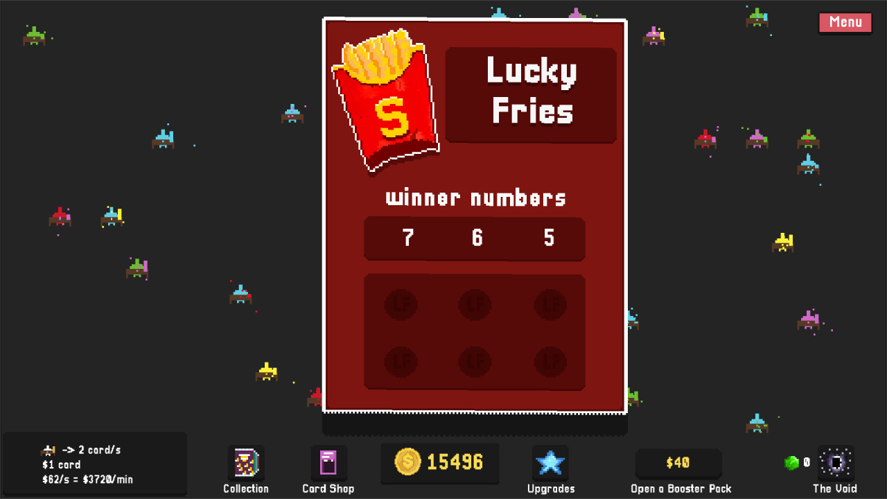 Scratchers — это инкрементальный симулятор, построенный на механике стирания виртуальных карточек для получения валюты. Основной игровой процесс заключается в раскрытии поверхностей карт методом point and click, напрямую генерируя наличные. Накопленное богатство служит главным ресурсом для разблокировки дерева усовершенствований и расширения масштабов операции.