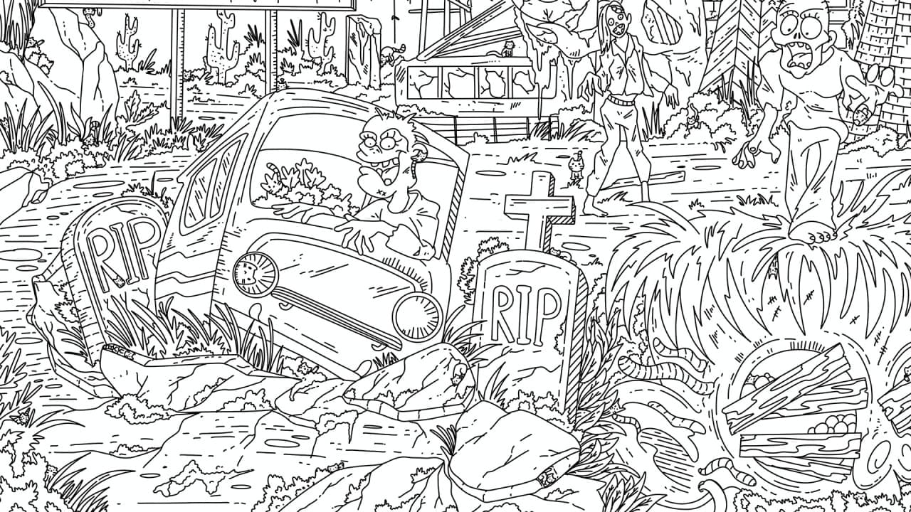 100 Zombie Cats – это игра в жанре поиск предметов, действие которой происходит в одной обширной локации. Основная задача игрока – отыскать кошек, скрытых в нарисованном от руки ландшафте с фигурами зомби. Геймеры сканируют окружение, представленное в виде линейного арта. Весь процесс заключен в одном уровне, требующем наблюдательности для выполнения цели.