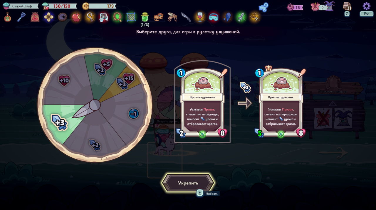 Мощь противников растет по мере смены внутриигрового цикла от дня к сумеркам и ночи. Чтобы одержать верх, армию геймера необходимо соответственно усиливать. Этот прогресс включает в себя получение различных карт животных для составления колоды. Призванных существ можно экипировать шляпами, дающими определенные усиливающие эффекты. Стратегия также формируется за счет сбора карт эльфийских умений и Артефактов, являющихся компонентами для выполнения задачи и достижения триумфа в hack and slash-сражениях.