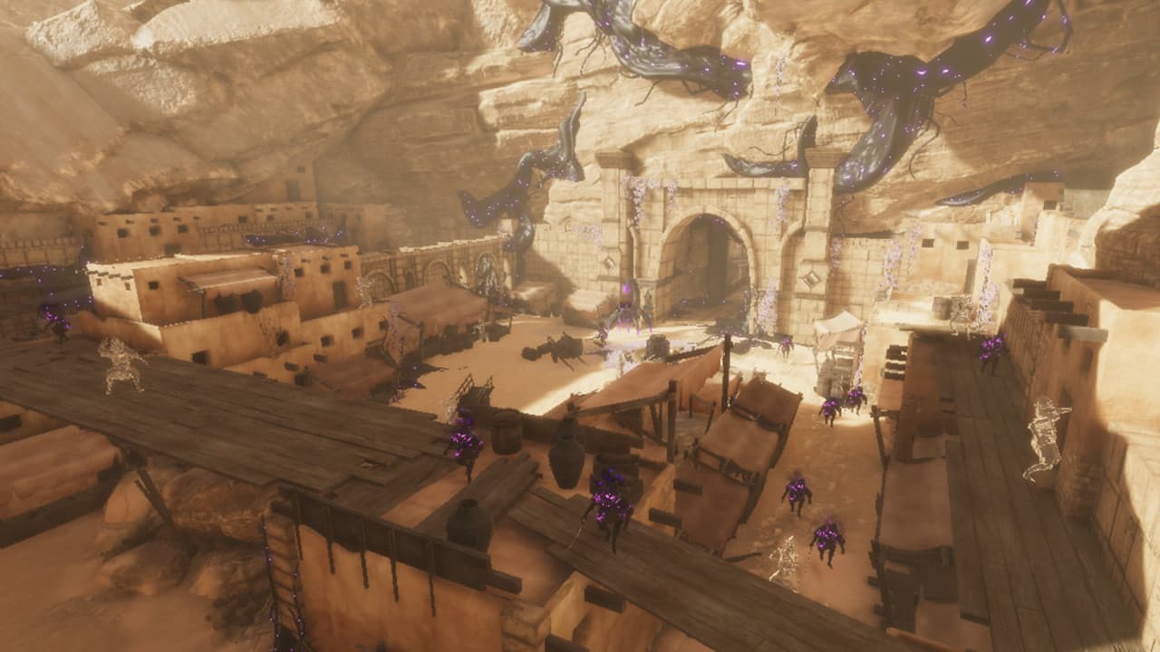 Metamorphos v Free (Steam) Новая версия Полная версия Последняя Дата выхода 8 мая. 2021 Разработчик Spicy Dice Studios Жанр Экшены, Приключения Обновлено 19 июня 2025, 15:24 Список изменений Metamorphos помещает игрока в роль хранителя храма, пробудившегося для исполнения особого долга. Его миссия заключается в зачистке сакральной локации от злой силы, осквернившей эти земли и их обитателей. Путь героя пролегает через череду столкновений с падшими жителями, дикими животными и даже другими стражами, попавшими под тлетворное влияние. Каждая стычка приближает к сердцу святилища и источнику скверны. Главная задача — дать отпор Нафасету, сущности по прозвищу Осквернитель, чтобы вернуть оазисам их былую мощь. Геймплей в Metamorphos представлен от третьего лица с упором на контактные поединки, состоящие из комбинаций атак и уворотов. Эта игра предлагает ситуации с нарастающей сложностью, где количество и мощь неприятелей увеличиваются по мере продвижения героя по локациям. Такая боевая система испытывает реакцию и умение принимать быстрые решения в сражении. Зачистка обители завершится поединками с 2 уникальными боссами, олицетворяющими ядро враждебной мощи. Кампания по искоренению скверны проходит в пустынной местности. Миссия по восстановлению земель потребует пересечь живописные просторы, чтобы добраться до центрального строения, Храма Аматани. Перемещение по этим территориям является частью задачи протагониста и ведет его к главному противостоянию. Весь антураж пустыни выступает ареной для битвы, цель которой — устранить последствия разрушительного воздействия и вернуть святыне ее изначальное назначение. Скачать торрент Скриншоты Показать больше Видео из игры Скачать БЕЗ торрента прямая ссылка через uTorria Альтернативные раздачи Прямые ссылки Облачные хранилища v Free (Steam) Показать Системные требования ОС: 10 / 11 (x64-bit) Процессор: Intel Core i5-6600k Оперативная память: 4 ГБ Видеокарта: Nvidia GTX 760 Место на диске: 2.4 ГБ Слэшер, Похожа на Dark Souls, Игрок против ИИ, Приключенческий экшен, От третьего лица, Линейная, Цветастая, Тёмное фэнтези, Магия, Атмосферная, Мрачная, Бой, Файтинги, Игры с геймпадом