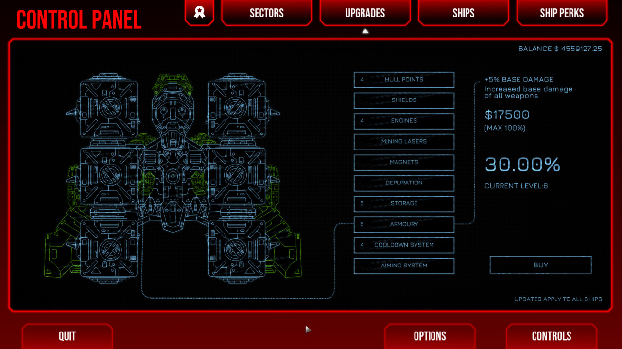 На выбор доступны 8 истребителей с различными характеристиками, служащие основой для создания сборок. Эти боевые машины можно улучшать посредством 12 отдельных систем апгрейда, а также десятков видов вооружения и специального оборудования. Этот проект предлагает бесконечное число комбинаций для кастомизации своего судна. Такой путь развития ведет пилотов в самые отдаленные уголки космоса. Там их ждет столкновение с вражеским Боссом, требующее прорваться через шквал снарядов для уничтожения цели и выполнения финального задания.