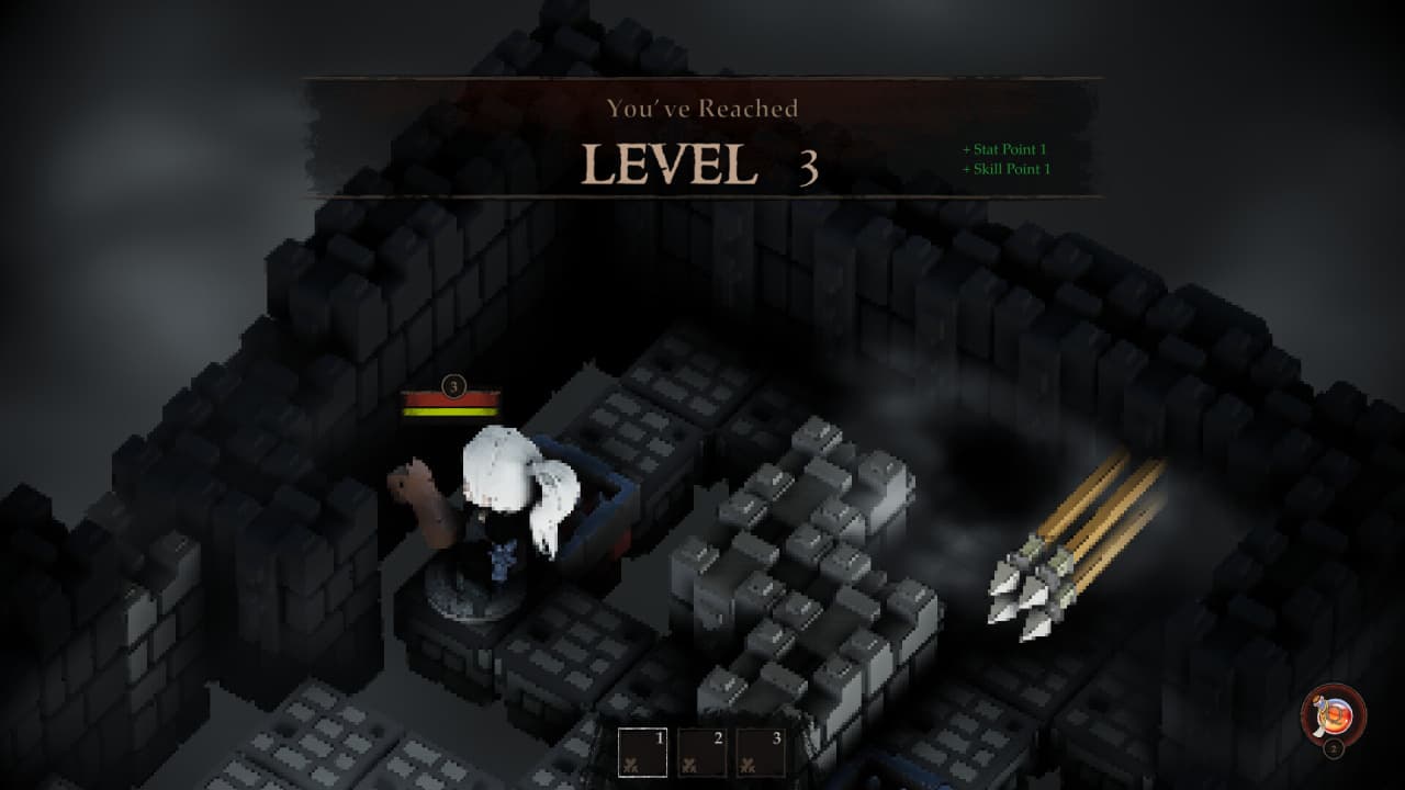 Боевая система в Slayer: the Demon Haunted World основана на тактике, где каждое действие приводит к последствиям. Перемещение игрока ограничено одной клеткой за ход — механика, напрямую влияющая на атакующий потенциал. Атаки возможны лишь в направлении взгляда героини, что вынуждает придерживаться продуманного подхода к схваткам. Каждая стычка с неприятелем представляет собой тактическую головоломку, требующую верного позиционирования и своевременных маневров для выживания среди врагов и ловушек.