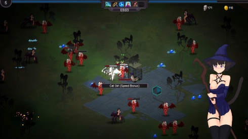 Стратегия боя настраивается с помощью уникальных предметов, изменяющих сборки персонажа для каждого забега. Выбранное божество также предоставляет отличительные способности для использования против оппонентов, включая похотливые орды недругов. Эта игра предлагает специфические достижения, некоторые из них расположены в областях, требующих для доступа особых действий, что дает дополнительные цели для прохождения. Со временем приобретаются постоянные улучшения, переносимые между попытками и повышающие возможности героя.