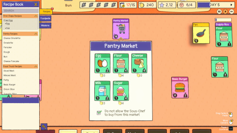Заработанную валюту тратят на наборы ингредиентов со случайными картами для настройки колоды и развития кухни. Некоторые гости, гурманы, предлагают в качестве награды медали Sizzle Medals, открывающие доступ к новым игровым механикам и финальным целям. Этот проект предлагает настраиваемый опыт с опциями коротких сессий, длинных смен с повышенными требованиями или специального режима, меняющего стандартные условия. Система позволяет экспериментировать с известными рецептами или открывать новые.