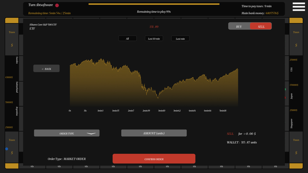 Проект включает механики, выходящие за рамки простого приобретения. Налоговые зоны на поле заставляют планировать время ликвидации активов для получения прибыли. Необходимо управлять средствами на нескольких банковских счетах, однако угроза банкротства постоянна. Рынки акций и золота взаимосвязаны, и изменение на одном способно повлиять на стоимость другого. Это создает подвижную экономическую среду, требующую от стратегий постоянной адаптации к новым условиям, возникающим на протяжении всей игры.
