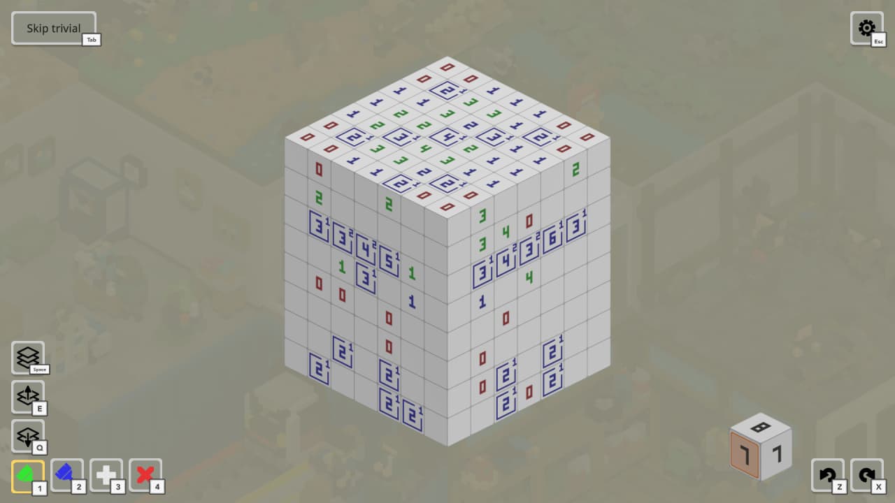 Voxelgram 2 предполагает систематическое создание трехмерных воксельных моделей на основе числовых логических подсказок, размещенных на нескольких осях. Игрок анализирует эти указания, чтобы точно определить, какие блоки следует сохранить, а какие уничтожить, постепенно "высекая" скрытый объект из цельного массива. Каждая успешно решенная загадка превращается в элемент более крупной тематической диорамы, которую геймер собирает по частям.